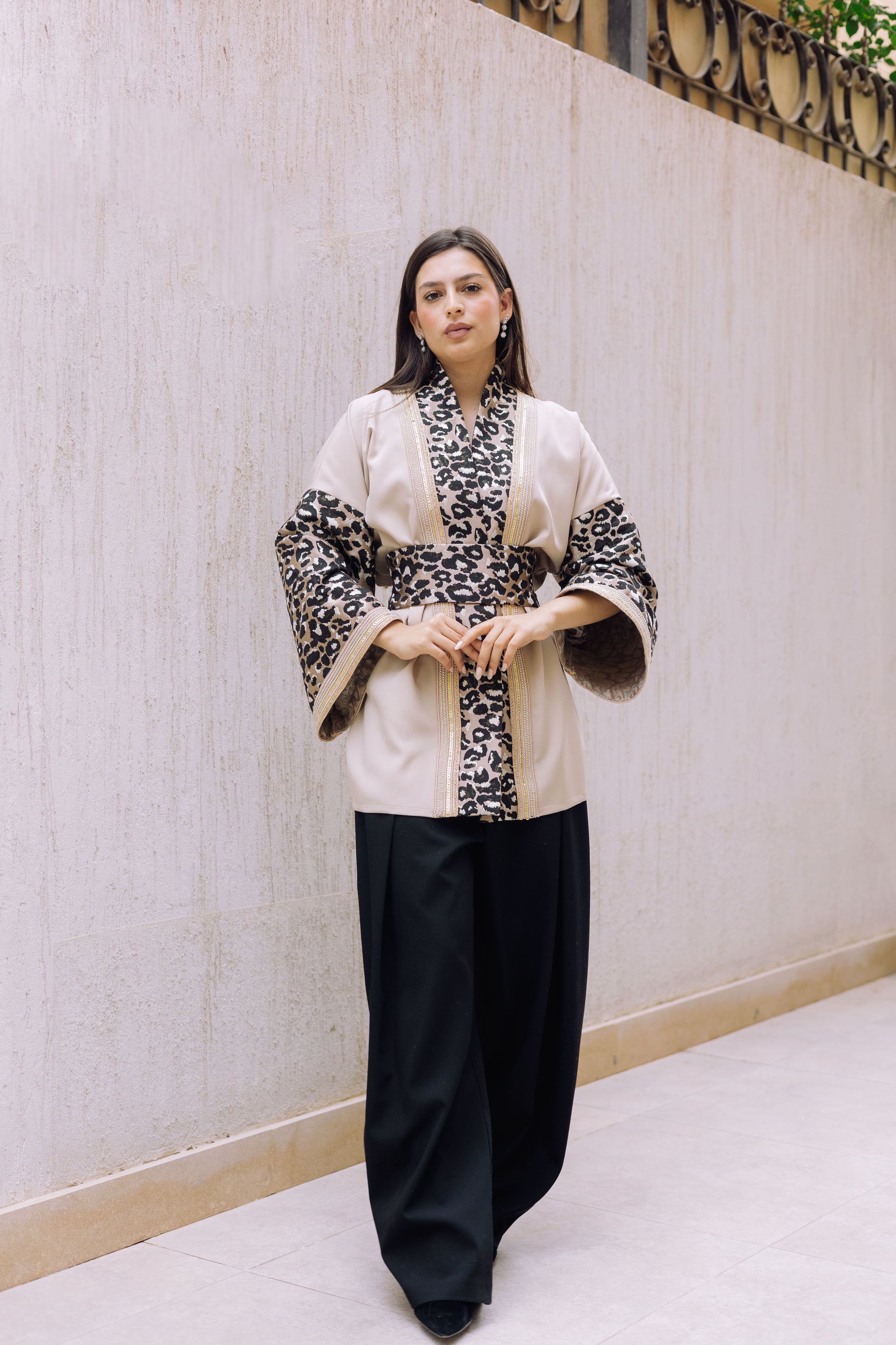 Tiger kimono in crepe كريب fabric x brocade بروكار fabric